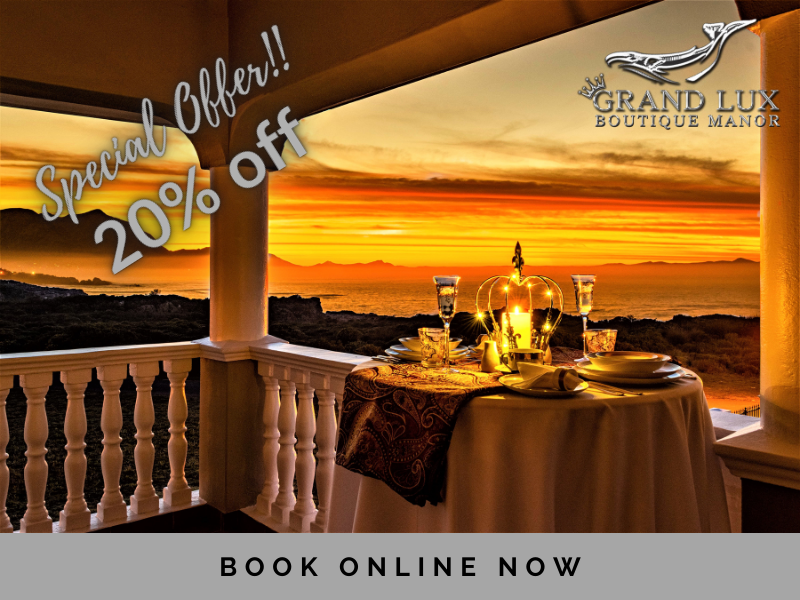 Grand Lux Boutique Manor is an aptly named majestic and imposing mansion that enjoys spectacular and expansive, clear, sea views of Walker Bay and Hermanus town’s coastline. Palatial and luxuriously grandiose in design whilst simultaneously exuding an intimate and warmly inviting ambiance to all who enter our huge doors, Grand Lux Boutique Manor’s dedicated team strives to deliver the ultimate in personalized, warm friendly service.